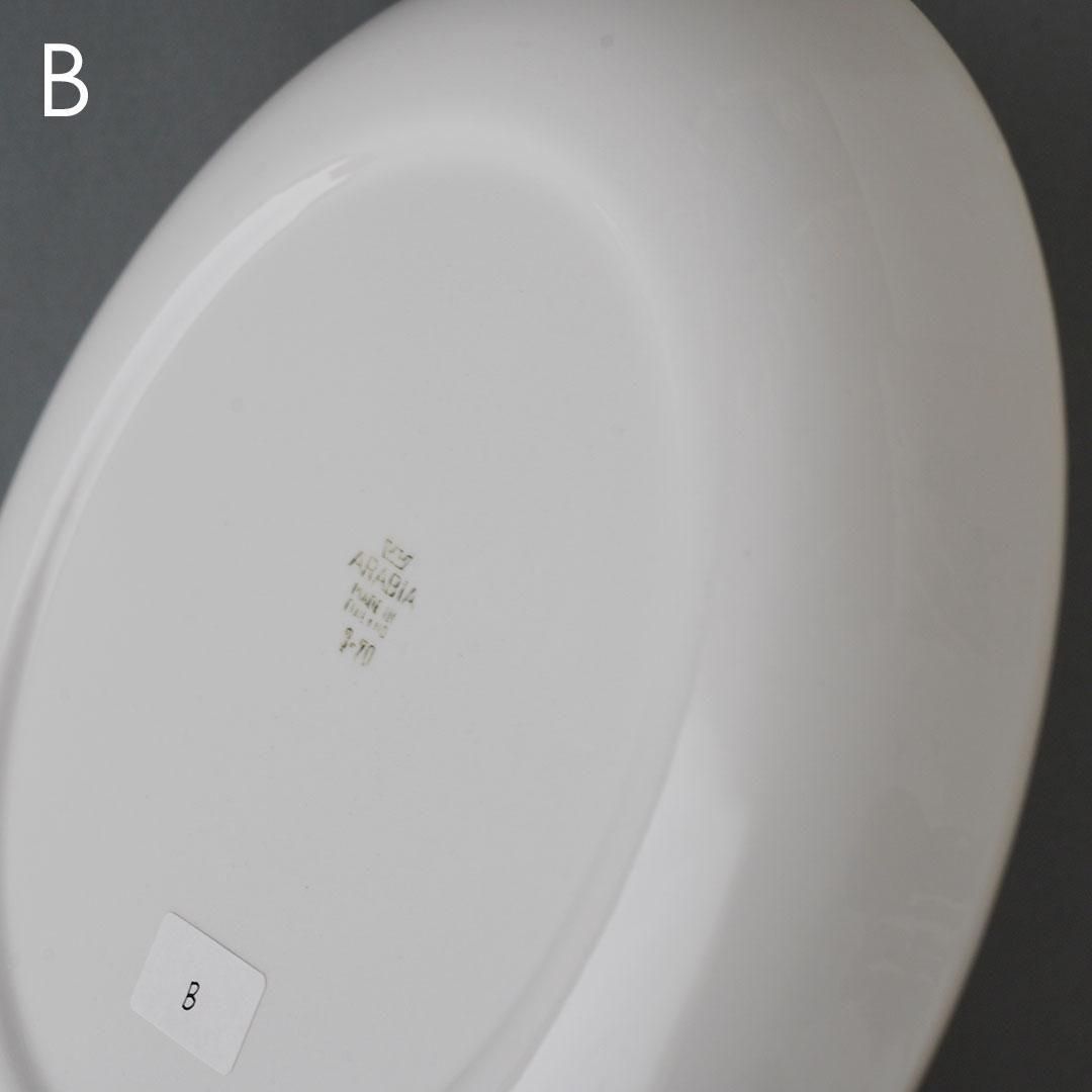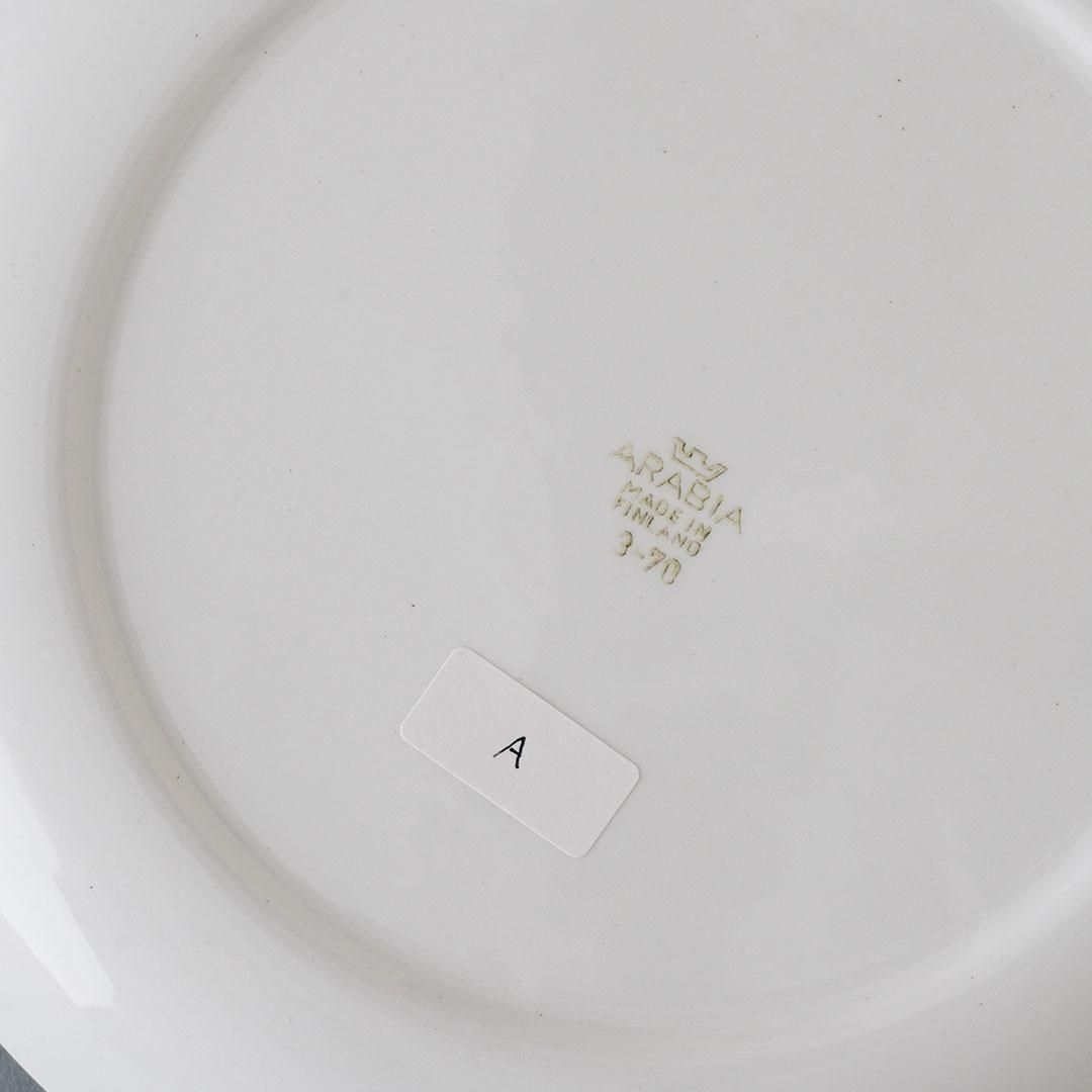 ライヤ・ウオシッキネンが1962年にデザインを手がけた Pomona(ポモナ)シリーズのイチゴ柄 20センチプレート。アラビア社は、リンゴやイチゴ、プラムなど自然の木々に囲まれたエリアだったそうです。彼女の工房から見える窓の景色からデザインのアイデアが生まれ、Pomonaシリーズが誕生しました。イチゴ・プラム・リンゴ・オレンジ・リンゴンベリーなどジャムポットのデザインからはじまり、マグカップやプレート、ピッチャー、クリーマー、ボウル、ジャーなどテーブルウェアシリーズとして人気を博しました。