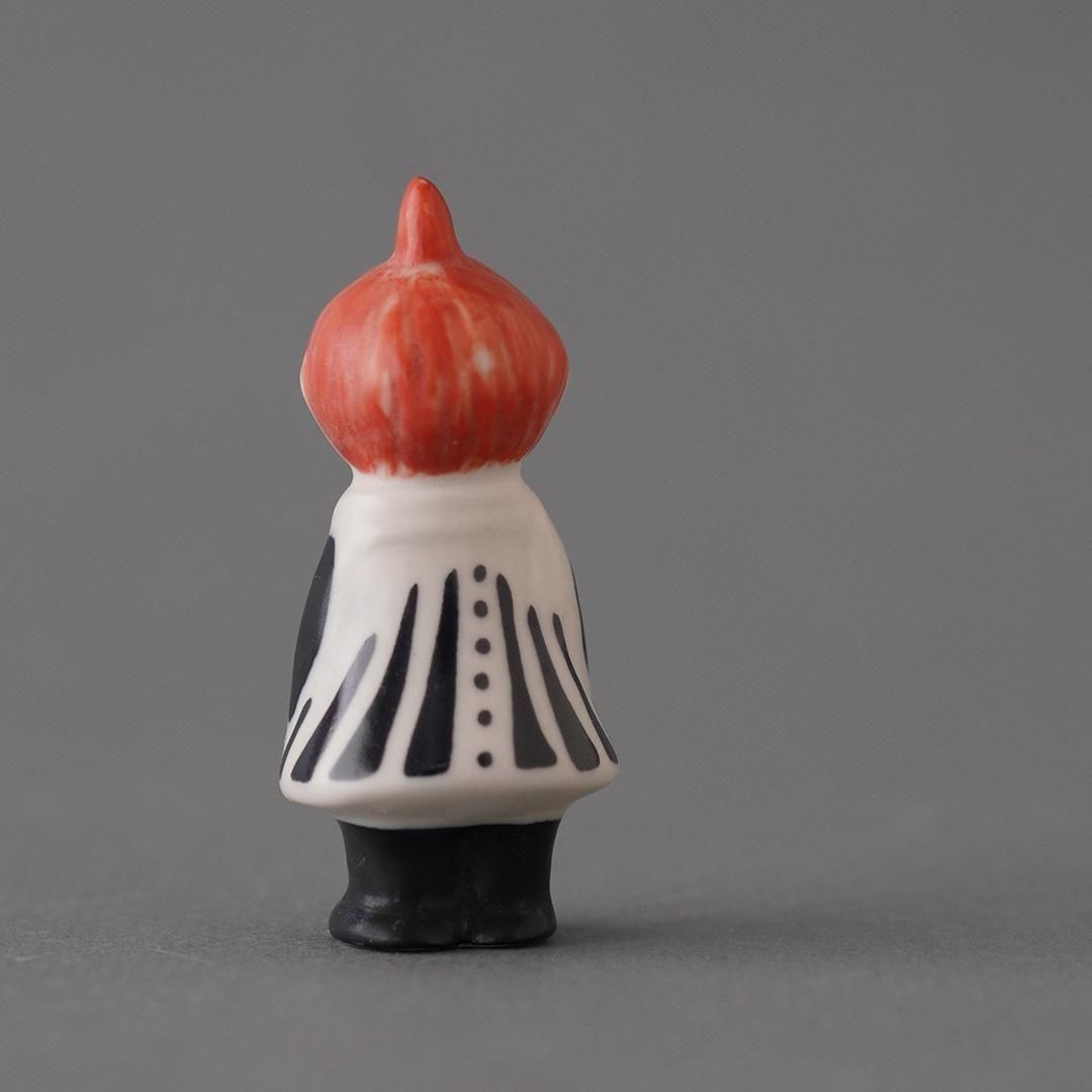 アラビアで1993年から1996年まで生産されていた陶器製ムーミンフィギュア。トゥーリッキ・ピエティラによるデザインです。Little My(ミイ)の小さい方のサイズです。ハンドペイントによるシリーズなので1点1点表情が異なります。