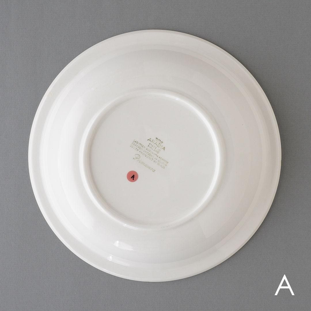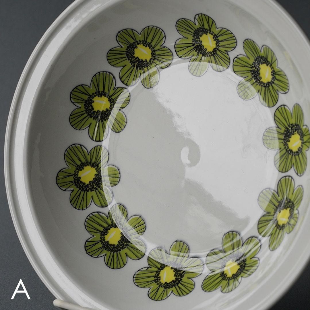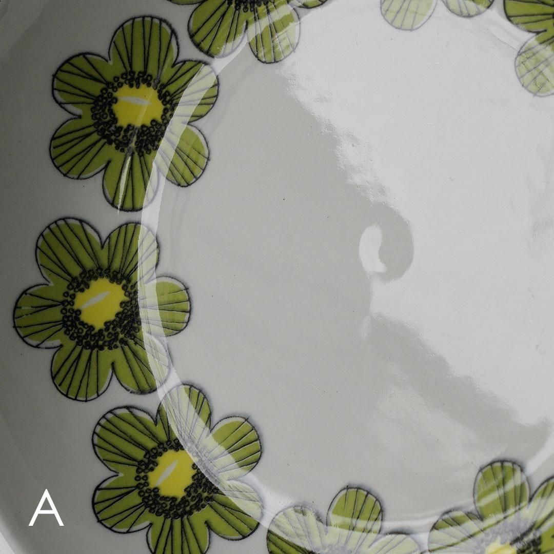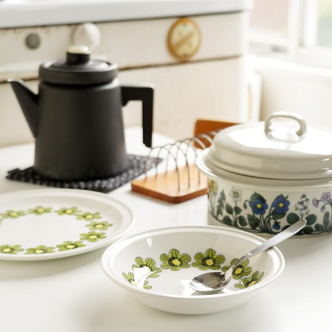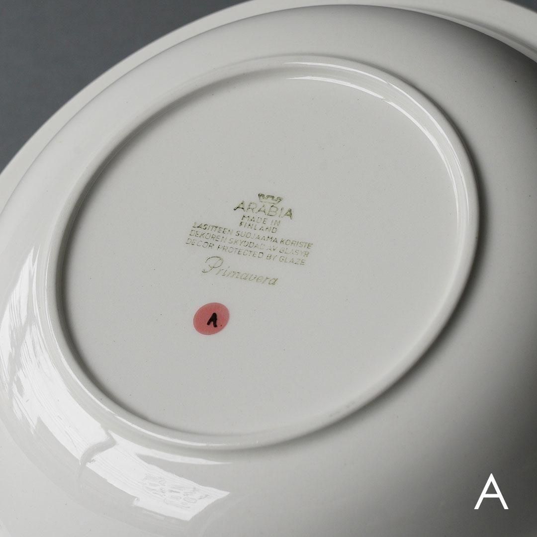 エステリ・トムラがデコレーションを手がけた Primavera(プリマヴェーラ)シリーズの19センチディーププレート(スーププレート/深皿)。「春」を意味するデザインは、ハンドタッチで描かれたお花に、淡いグリーンとイエローの彩色が爽やかな印象を与えてくれます。1971年から1974年の期間に製造されました。